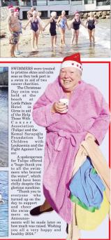 SWIMMERS were treated to pristine skies and calm seas as they took part in a swim in aid of two cancer charities. The Christmas Day swim was held at the beach at Lords Palace Hotel in Girne in aid of the Help Those With Cancer Association (Tulips) and…