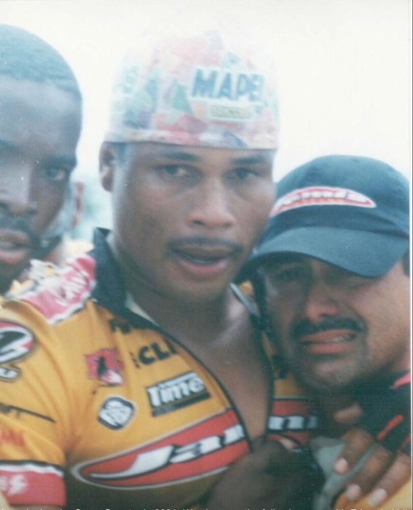 Santiago “Santino” Castillo Jr (right) with Ernest “Jawmeighan” Meighan after the 2001 Holy Saturday Cross Country Cycling Classic victory – Photo Courtesy: Santino