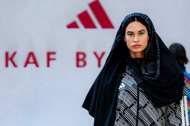 Designed by Kawthar Alhoraish, it fuses Saudi traditional clothing with contemporary athletic style, featuring versatile pieces like abayas, headscarves, and performance wear, blending creativity, heritage, and modern fashion.Adidas hosted its first regional runway show in partnership with Saudi label Kaf by Kaf, revealing the SS25 Sportswear Collection ahead of Riyadh Fashion Week.