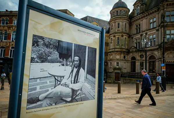 For original article, see https://www.theartnewspaper.com/2024/07/17/photography-alfresco-show-honours-brummie-poet-giant-benjamin-zephaniah