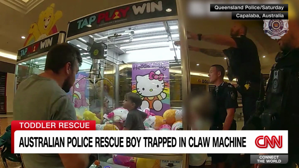 Three-year-old Ethan flew too close to the sun after getting stuck in a claw machine in pursuit of a furry prize, thankfully the police were able to save the dayThree-year-old Ethan flew too close to the sun after getting stuck in a claw machine in pursuit of a furry prize, thankfully the police were able to save the day