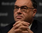 Continue reading…Andrew Bailey says OBR projections – which the chancellor uses to calculate headroom – shouldn’t be ‘over-interpreted’The Bank of England governor, Andrew Bailey, has waded into the controversy over Rachel Reeves’s fiscal rules with a warning against “over-interpreting” the Office for Budget Responsibility’s forecasts.The chancellor announced spending cuts in her spring statement in March to rebuild headroom of £9.9bn against her fiscal rules based on projections from the OBR. Continue reading…