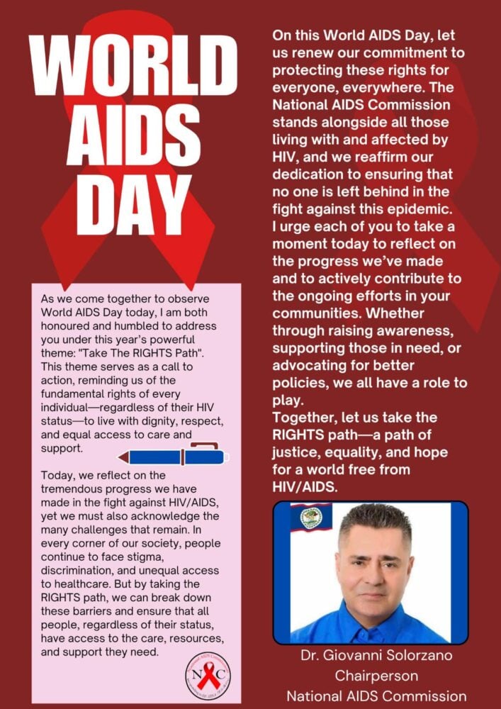 Belize’s National AIDS Commission marked World AIDS Day with a renewed call to action under the theme “Take the RIGHTS Path,” emphasizing dignity, equality, and universal access to care for individuals living with or affected by HIV/AIDS.