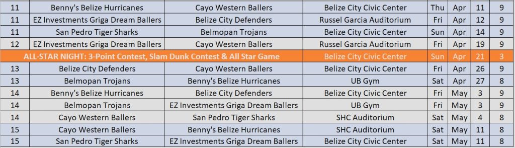 The post Belize Elite Basketball League releases revamped championship schedule; 11 games left in regular season appeared first on Belize News and Opinion on www.breakingbelizenews.com.