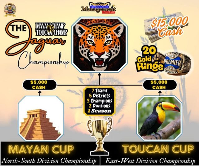 The BPBL will be introducing The Jaguar Championship, an initiative by Hurricanes Management Initiative. The competition will feature two main cups: the Mayan Cup, covering the North-South Division Championship, and the Toucan Cup, representing the East-West Division Championship. At the end, the two champions will face off for the Jaguar Championship. Teams will be competing for impressive prizes, including $15,000 cash, 20 gold rings, and an additional $5,000 cash prize for each cup winner.