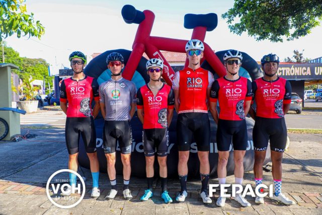 Derrick Chavarria (far right) with his United States team Rio Grande before Stage 4 of XLIII International Cycling Tour of Chiriquí in Panama – Photo Courtesy: Internacional VCH Chiriquí/ Panama Cycling Federation (FEPACI)