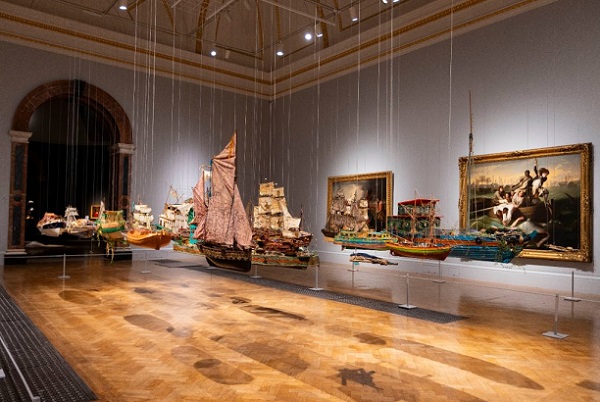 Jo Lawson-Tancred (Artnet) reviews “Entangled Pasts: Art, Colonialism and Change”–presently on view at the Royal Academy in London through April 28, 2024. She writes, “Works by a Frank Bowling, Kerry James Marshall, and Lubaina Himid are shown alongside historical paintings a documents that reveal the academy’s own historically white bias.” Shown above is the installation view of Hew Locke’s “Armada” (2017–19) [photo by David Parry].