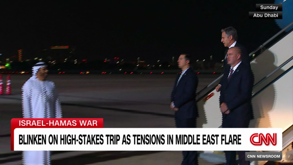 The U.S. Secretary of State is on a high-stakes trip to the Middle East in hopes of keeping the Israel-Hamas war from spreading. CNN’s Melissa Bell reports on Blinken’s trip from Paris.The U.S. Secretary of State is on a high-stakes trip to the Middle East in hopes of keeping the Israel-Hamas war from spreading. CNN’s Melissa Bell reports on Blinken’s trip from Paris.