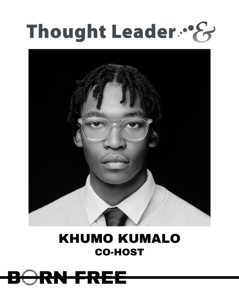 Khumo Kumalo is the visionary behind Misunderstood and the dynamic co-host of Born Free. Named one of the Mail & Guardian’s Top 200 Young South Africans of 2024, he is a bold voice in the country’s evolving political discourse.