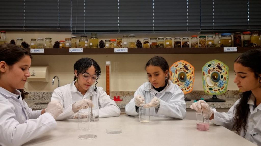 Students from Instituto GayLussac, in Brazil, demonstrate how to create a sustainable bioplastic.Students from Instituto GayLussac, in Brazil, demonstrate how to create a sustainable bioplastic.