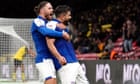 Continue reading…George Hirst also on target for Ipswich in 2-1 win at WatfordJobe Bellingham scores only goal at the Stadium of LightSam Morsy fired Ipswich to the top of the Championship table with a late winner at Watford. However, the visitors had to come from behind at Vicarage Road after Yáser Asprilla had given the Hornets a 12th-minute lead.George Hirst levelled with 24 minutes gone, but Kieran McKenna’s promoted side had to wait until 10 minutes from time to clinch a 2-1 victory when skipper Morsy made the most of Wesley Hoedt’s defensive slip with a cool finish. Continue reading…