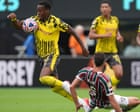 Continue reading…Dortmund value winger Jamie Gittens at £50mMamadou Sarr aims high after joining from StrasbourgChelsea are prioritising a move for the Borussia Dortmund winger Jamie Gittens but have also held further talks with West Ham over Mohammed Kudus and contacted Brighton about João Pedro as they consider buying a versatile forward.Enzo Maresca is determined to sign a right-footed left-winger and there is an expectation that Gittens will end up at Chelsea this summer. Dortmund rejected a £42m bid for the 20-year-old this month but Chelsea have agreed personal terms with the England Under-21 international and are likely to return with an improved offer. Chelsea have identified Lyon’s Malick Fofana as a potential alternative to Gittens, who is valued at £50m by Dortmund. Continue reading…