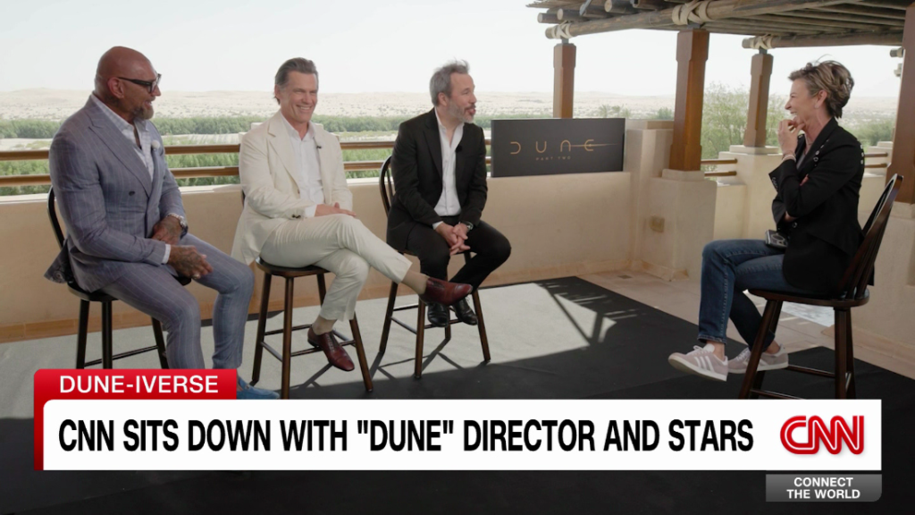 CNN’s Becky Anderson talks with “Dune: Part Two” director Denis Villeneuve and stars Josh Brolin and Dave Bautista in Abu Dhabi, after the Middle East premiere of the sequel.CNN’s Becky Anderson talks with “Dune: Part Two” director Denis Villeneuve and stars Josh Brolin and Dave Bautista in Abu Dhabi, after the Middle East premiere of the sequel.
