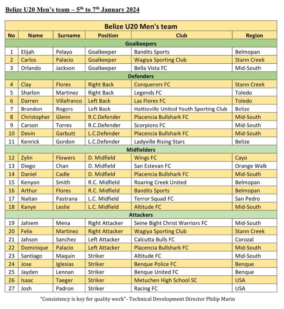 The post Coach Dale Pelayo calls 27 Under 19 Belize Men’s National Team players to training camp in preparation for 2 international tournaments appeared first on Belize News and Opinion on www.breakingbelizenews.com.