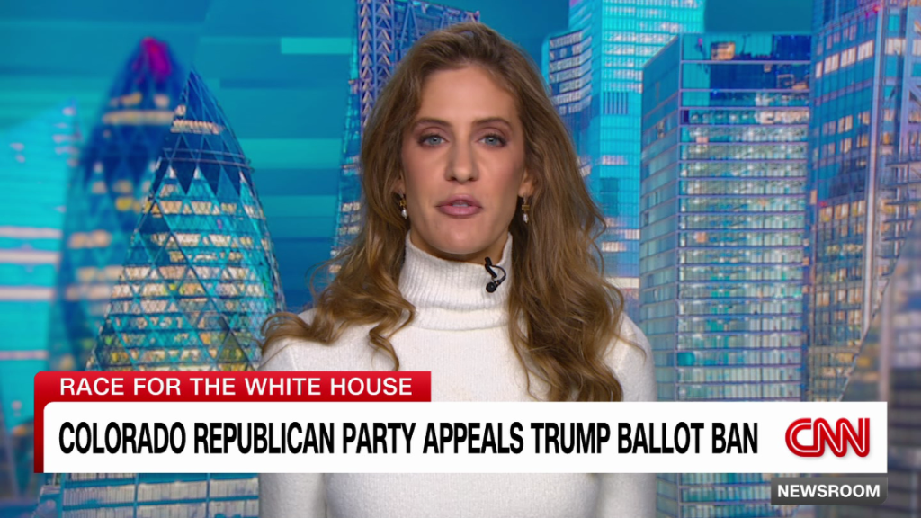 The Colorado Republican Party asked the U.S. Supreme Court to keep Donald Trump’s name on that state’s 2024 primary ballot following a state Supreme Court ruling that removed him from the ballot, CNN’s Katelyn Polantz reports.The Colorado Republican Party asked the U.S. Supreme Court to keep Donald Trump’s name on that state’s 2024 primary ballot following a state Supreme Court ruling that removed him from the ballot, CNN’s Katelyn Polantz reports.
