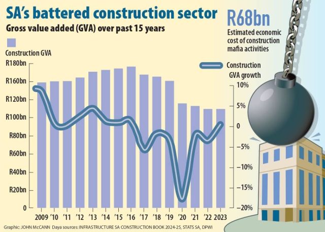 Mqenebe is one of many legitimate business people who have suffered at the hands of so-called business forums — the “construction mafia” — who, often armed with AK47s and other weapons, use the threat of violence to demand contracts or payments of up to 30% of the value of construction projects without doing any work.