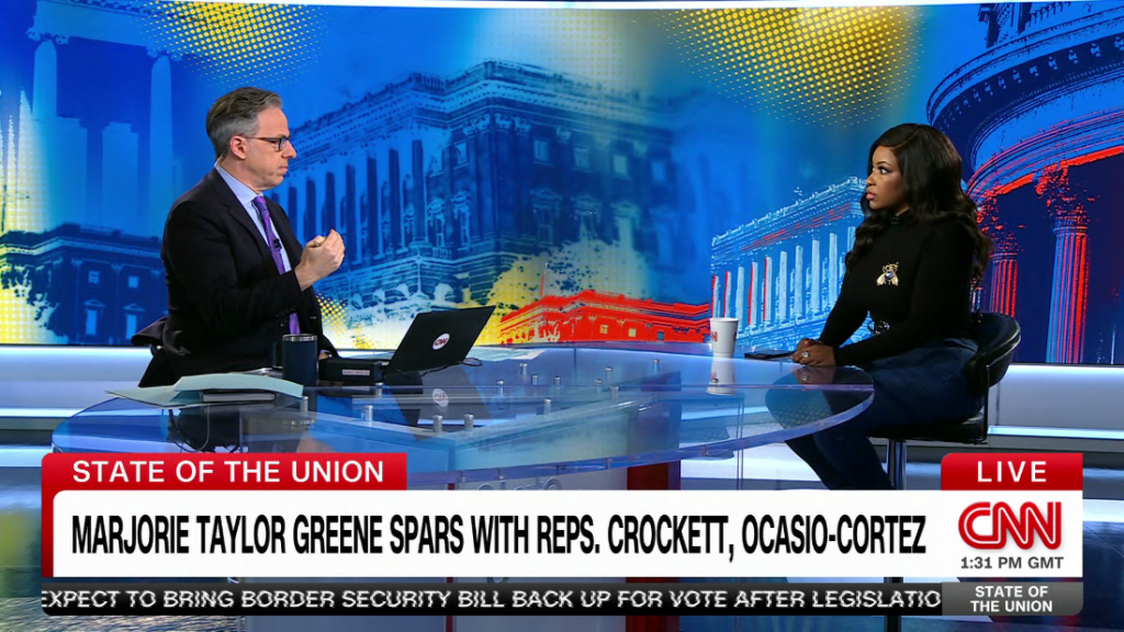 Democratic Rep. Jasmine Crockett tells CNN’s Jake Tapper that Republicans “just let Marjorie do whatever she wants to do.”Democratic Rep. Jasmine Crockett tells CNN’s Jake Tapper that Republicans “just let Marjorie do whatever she wants to do.”