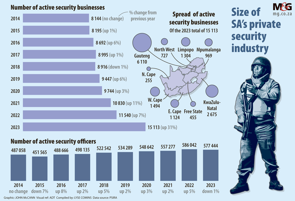 “While SA’s security industry has been burgeoning, so has crime … which in and of itself raises questions about how effective the industry has been at addressing crime.
