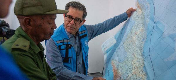 [Shown above: “UN Resident Coordinator Francisco Pichón speaks with civil defence authorities in Santiago de Cuba.”]