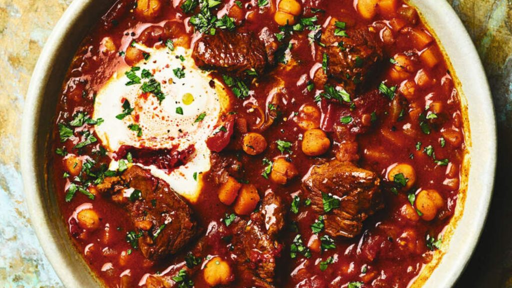 This dish is a real winner, said Leon’s director of food, Erica Molyneaux. My version of a warming, gently spiced Moroccan soup-stew, finished with a swirl of harissa, it’s perfect for a simple weeknight supper or for when you have friends over.