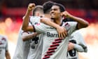 Continue reading…Xabi Alonso’s side open up eight-point gap at top of tableAtlético Madrid enjoy 5-0 victory over Las Palmas in La LigaBayer Leverkusen scored once in either half to battle past hosts Heidenheim 2-1 on Saturday and open up an eight-point gap at the top of the table while also equalling a German record of 32 matches without defeat across all competitions. The visitors snatched the lead on the stroke of halftime with Jeremie Frimpong slotting in with a slightly deflected effort.Florian Wirtz hit the crossbar in the 77th minute but then delivered a superb assist three minutes later for Amine Adli to stab in and make it 2-0. Heidenheim reduced the deficit in the 87th through Tim Kleindienst. Xabi Alonso’s team have yet to lose a match this season – both in domestic and European competitions – and have equalled Bayern Munich’s record run of 32 unbeaten matches from 2020. Leverkusen are top on 58 points, eight ahead of Bayern, who take on VfL Bochum on Sunday. Continue reading…