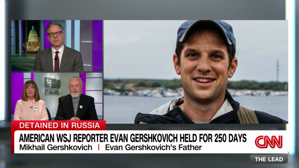 Ella Milman and Mikhail Gershkovich discuss their son’s imprisonment with CNN’s Jake Tapper.Ella Milman and Mikhail Gershkovich discuss their son’s imprisonment with CNN’s Jake Tapper.