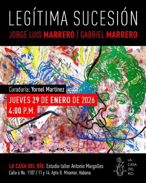 [Many thanks to Elías Permut (Critical.Caribbean.Art) for bringing this item to our attention.] “Legítima sucesión” is an exhibition featuring father and son duo Jorge Luis Marrero Carbajal and Gabriel Marrero. Curated by Yornel Martínez Elías, the exhibition opened on January 29, 2026, at La Casa del Río (located at 1107 6th Street between 11th and