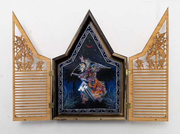 Description: Seein’ Sperrit is a collection of watercolour and oil paintings influenced by the elements–Robinson’s steelworks patinaed by the atmosphere and Nattoo’s paintings created with river water. Each artist carefully considers their relationship with land, spirit, history, and our futures as they advocate for the preservation of the totality of our beings.
