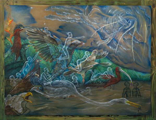 The TERN gallery team is excited to open Seein’ Sperrit, a two-person exhibition featuring Bahamian artist Alexandria Robinson and Jamaican artist Richard Nattoo, which explores themes of masquerading, spirituality, land degradation, and reclamation. This exhibition marks both artists’ inaugural presentation with TERN and Nattoo’s first exhibition in The Bahamas. The show opened yesterday, May 29, and will