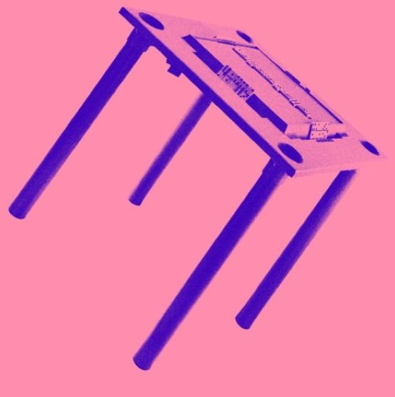 [Shown above: Andrés Salas | Mesa de dominó (Prototype) | 1992 | Resin PVC | 32″ x 29″ x 29″ | Design commissioned by Industrias Vasallo.]