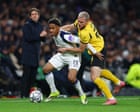 Continue reading…Manager showed tactical bravery in darkest hour and like Postecoglou may find respite outside Premier LeagueThomas Frank was backed into a corner on every level, including team selection. The Tottenham manager had next-to-no options, only 11 established outfield players for the Champions League home game against Borussia Dortmund on Tuesday night.The expectation was for an either/or choice between Djed Spence and Destiny Udogie at left-back. But when the teamsheets dropped, it turned out Frank had picked them both and left Randal Kolo Muani on the bench. It was the latest low point for Kolo Muani, who has to be regretting his decision to join on a season-long loan from Paris Saint-Germain. Continue reading…