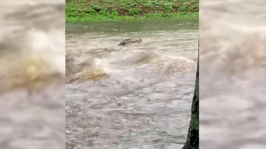 Wildlife rangers removed a 2.5m (8 feet) long saltwater crocodile from a flooded creek in the town of Ingham, North Queensland, Australia. The region has been experiencing its heaviest rain in decades, causing severe floods.Wildlife rangers removed a 2.5m (8 feet) long saltwater crocodile from a flooded creek in the town of Ingham, North Queensland, Australia. The region has been experiencing its heaviest rain in decades, causing severe floods.