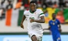 Continue reading…Leicester striker has struggled for Championship game time but has became the first player to score at every Afcon age levelIt is perhaps no surprise that Patson Daka wrote himself into the history books by scoring for Zambia at the Africa Cup of Nations on Sunday. The 25-year-old has had to bide his time at Leicester City this season, spending a large part of it on the bench, but he has kept working hard and arrived in Ivory Coast with a point to prove.In Zambia’s first game he provided an assist as the Chipolopolo drew with the Democratic Republic of the Congo before scoring in the 1-1 draw with Tanzania and becoming the first player to find the net in every Afcon possible: the Under-17, Under-20, Under-23 and senior competition. Continue reading…