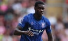 Continue reading…Defender suffered deep cut to hand while doing dishesSwift medical response and operation saved his thumbThe Ipswich defender Axel Tuanzebe faces a spell on the sidelines after a horror accident that put him at risk of losing a thumb.Tuanzebe missed the promoted side’s 4-1 defeat at West Ham on Saturday with an unspecified hand injury that his manager, Kieran McKenna, revealed had required surgery. It has since emerged that the right-back was badly injured in a domestic incident in which his hand was lacerated while washing up. Continue reading…