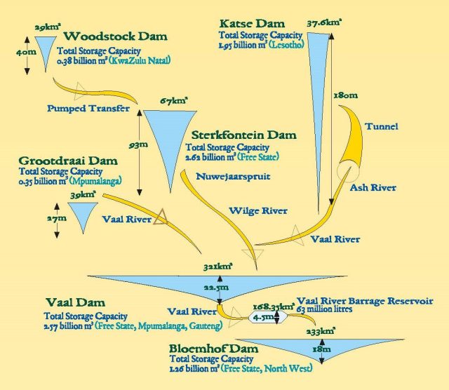 “It wasn’t long before the water that naturally enters the Vaal dam was not sufficient to meet the demands of the industrialising highveld. It was for this reason that two major “inter-basin” water transfer schemes were developed, capable of feeding water into the Vaal’s main feeder rivers from catchments hundreds of kilometres to the south,” Tempelhoff said.