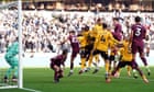 Continue reading…With about 25 seconds of five fraught minutes of second-half stoppage time remaining, John Stones powered in Phil Foden’s corner to send the Wolves assistant coach, Shaun Derry, sinking to the turf in the home technical area and the away fans wild. For Gary O’Neil, the sickening part centred on the manner of the goal, with Bernardo Silva screening José Sá in the Wolves goal. Last season Wolves railed at VAR after Max Kilman saw a 99th-minute leveller disallowed at West Ham because Tawanda Chirewa was deemed to be blocking the view of Lukasz Fabianski. This time the referee, Chris Kavanagh, visited the VAR monitor and returned a verdict in Pep Guardiola’s favour.Of course, a hulking 6ft 4in Norwegian, a 24-year-old No 9 would open the scoring. Only it was not Erling Haaland but Jørgen Strand Larsen who capped a slick Wolves move to give City something to think about. Guardiola’s side equalised courtesy of a graceful Josko Gvardiol strike but just as it seemed Wolves would be rewarded for digging deep into the energy reserves to eke out an invaluable point, they were consigned to a damaging defeat. By this point next weekend, Wolves will have faced seven of the top eight across their first nine matches. Continue reading…
