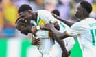 Continue reading…Metz midfielder shines with two goals in opening 3-0 victoryCameroon in action against Guinea, Algeria v Angola to followLamine Camara’s double helped Senegal get their Africa Cup of Nations title defence off to a winning start as they recorded a comprehensive 3-0 victory over the Gambia’s 10 men.Pape Gueye put the 2021 champions ahead just four minutes in, while the Gambia were reduced to 10 men when the Cardiff midfielder Ebou Adams was sent off on the stroke of half-time. Camara doubled Senegal’s lead seven minutes after the break and wrapped up victory in style with a stunning curling strike in the closing stages.This article will be updated with the day’s remaining Afcon games Continue reading…