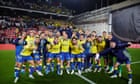 When the bus departed, one player wasn’t on board. Manu Fuster’s mother has been feeding flood victims at her restaurant in Quart de Poblet; now his brother was waiting for him in the car outside, ready to take him home. With a lovely flick of his right foot, he had scored the third, having only been on the pitch two minutes. “It was very special for everything that’s happened, because it’s my first in primera, because it helped us win,” he said before setting off straight for Valencia. “If you’d said we’d be in this position this a month back, we’d have put our heads in our hands. No one bet a duro, five pesetas, on us but things have changed completely.”