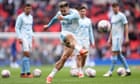 Continue reading…FA Cup semi-final updates, 5.15pm BST kick-off at WembleyLive scoreboard | Read Football Daily | Send Scott an emailThe BBC ask Pep Guardiola whether his team are ready to bounce back from the disappointment of Champions League defeat. “The team are not disappointed … when a team plays well we are never disappointed … we don’t have to feel sorry or ashamed for the way [we] perform … it is football, it is life … we are in a semi-final against a historical team like Chelsea so of course you have to perform well … winning or losing against Madrid we would do the same … [Erling Haaland] is injured … it is not much but he is not able to play today.”All the pre-match patter. Includes news of Enzo Fernández carrying a hernia problem, and this season’s emergence of Cole Palmer. Continue reading…