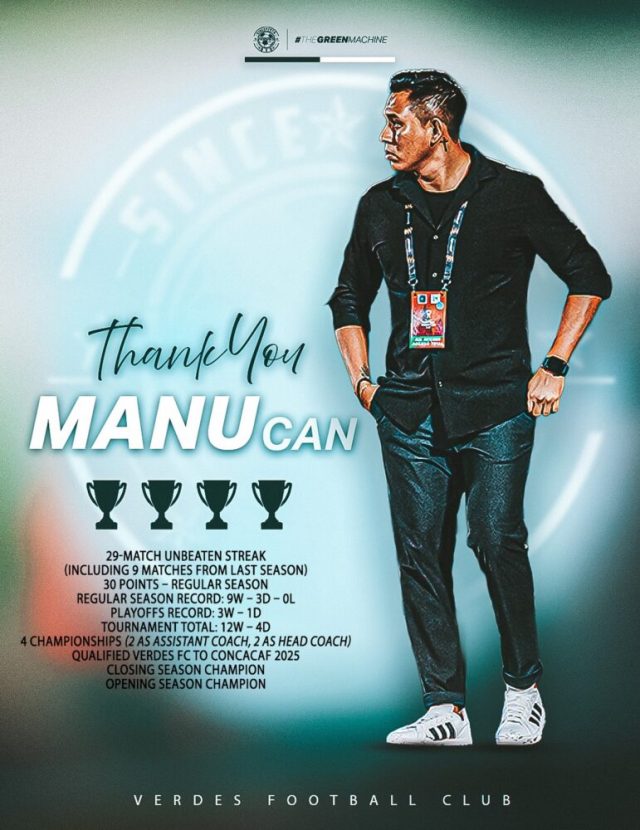 “Thank you, Coach Manu Can. You will always be part of the Verdes family,” the club said in its message.