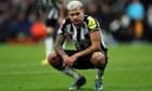 Continue reading…Eddie Howe’s side were undone by squandered chances, injuries and tired legs – problems even Saudi riches can’t solveThey’ll always have Paris. They’ll have the glorious memories of hammering Paris Saint-Germain 4-1 at home, but Newcastle will also have the fury and frustration of the injury-time penalty at the Parc des Princes two weeks ago. It was that decision, a cross flicking off Tino Livramento’s torso and on to his arm as he chased back, that they will feel, far more than defeat by Milan, eliminated them from Europe.In time, perhaps, there will be a feeling that a slender squad will benefit from the free midweeks later in the season. In the long run, in terms of qualifying for next season’s Champions League, which will be essential for attracting the highest tier of talent to the club, this may be for the best. But it will be a while before the disappointment fades, and the sense of being cheated. Continue reading…