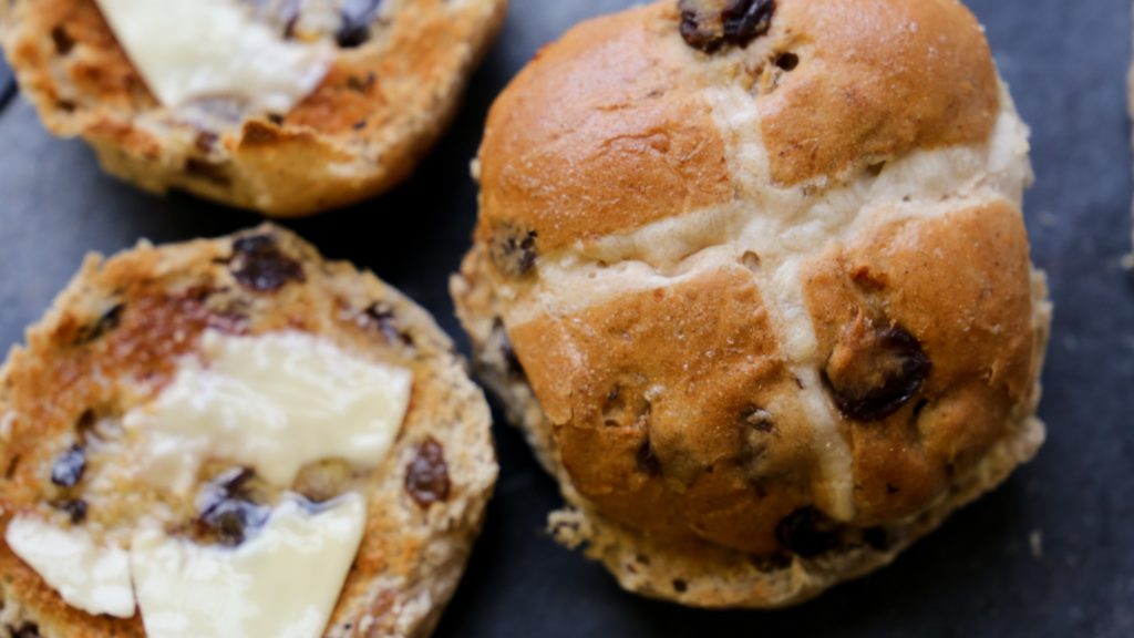 The standard hot cross bun is defined by the Oxford English Dictionary as “a type of sweet spiced currant bun marked with a cross and traditionally eaten hot or toasted on Good Friday”. In the Christian tradition, the cross represents the crucifixion of Jesus, and the spices in the dough represent those used to embalm Jesus after his death.
