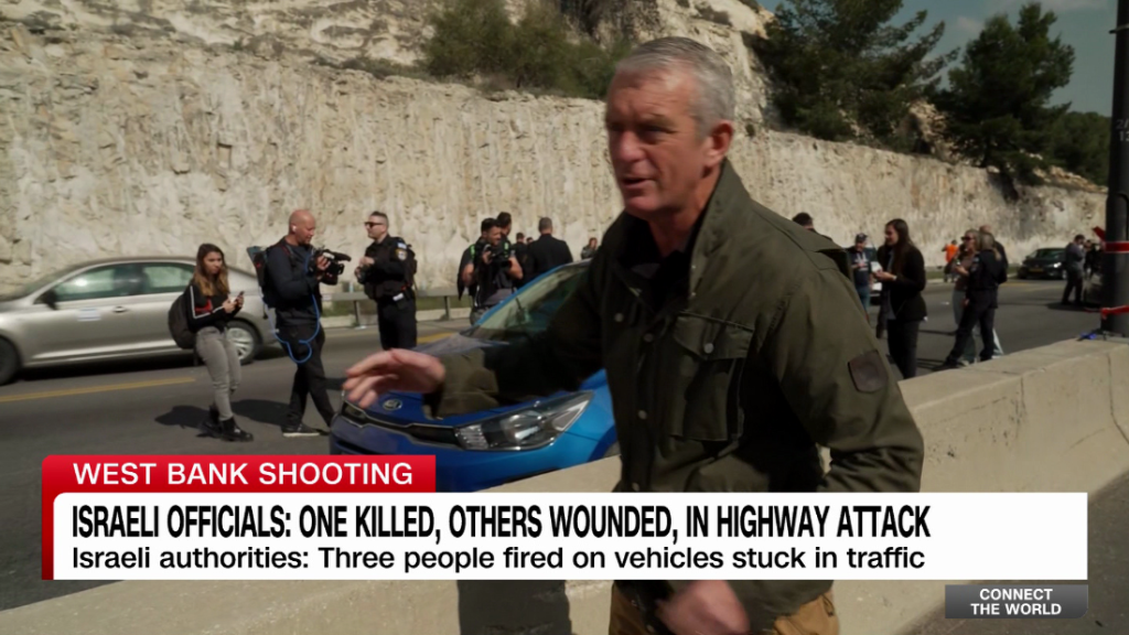 Nic Robertson covers an attack on a highway in the occupied West Bank near the Ma’ale Adumim settlementNic Robertson covers an attack on a highway in the occupied West Bank near the Ma’ale Adumim settlement