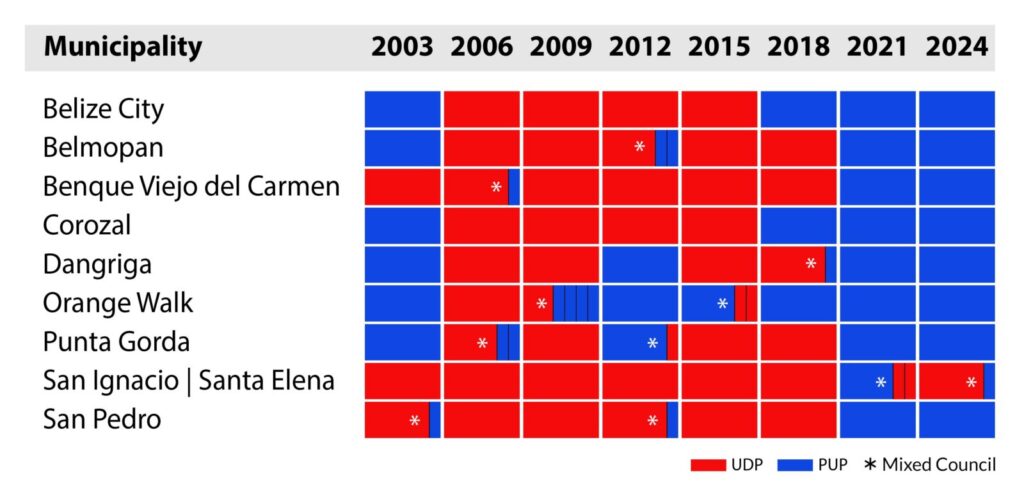 The PUP retained Corozal, Orange Walk, San Pedro, Belize City, Belmopan, Benque Viejo, Dangriga, and Punta Gorda while losing the Twin Towns to the United Democratic Party (UDP)’s Earl Trapp with six members to one.