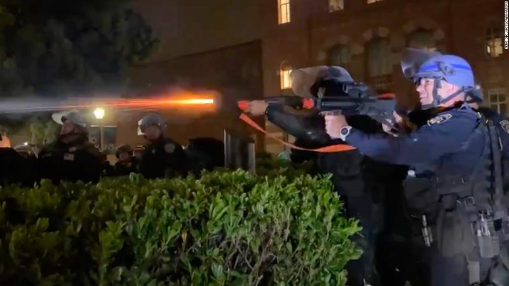 Authorities move farther into the encampment on UCLA’s campus and fire what appears to be rubber bullets, according to a CNN team on the ground.Authorities move farther into the encampment on UCLA’s campus and fire what appears to be rubber bullets, according to a CNN team on the ground.