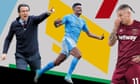 Martin Ødegaard and Declan Rice were the driving forces in Arsenal’s midfield that pushed Manchester City all the way, and William Saliba excelled in the division’s meanest defence while barely breaking sweat. The blistering late-season form of Cole Palmer, Ollie Watkins and Michael Olise also deserve a mention, although it’s hard to look past City’s two most influential players this season: Phil Foden and Rodri. Foden came of age in the lengthy absence of an injured Kevin De Bruyne and has deservedly been crowned player of the year by the Premier League and Football Writers’ Association. Rodri was mystifyingly left off the shortlist for the former but his achievement of going the season unbeaten in a City shirt, other than in a game lost on a shootout, underlined his importance to everything they do. Ed Aarons