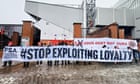 Continue reading…Bitter rivalries are being set aside, as supporters join forces to push back against ‘absolute disgrace’ of cost increasesSome issues transcend the biggest rivalry in the Premier League, as the sight of a Manchester United banner outside the Kop on Sunday underlined. Before Liverpool and United shared a point inside Anfield supporters of both clubs joined forces to make one about rising ticket prices and the attack on concessions in the world’s richest football league.“There is an irony to this,” said the United fan Steve Crompton. “What we are trying to protect is us going into the ground and hating each other for 90 minutes, and yet here we are. This rivalry is part of the Premier League’s product. If you fill the ground with corporates the atmosphere will eventually disappear and so will the ‘legacy fans’, as we get labelled.” Continue reading…
