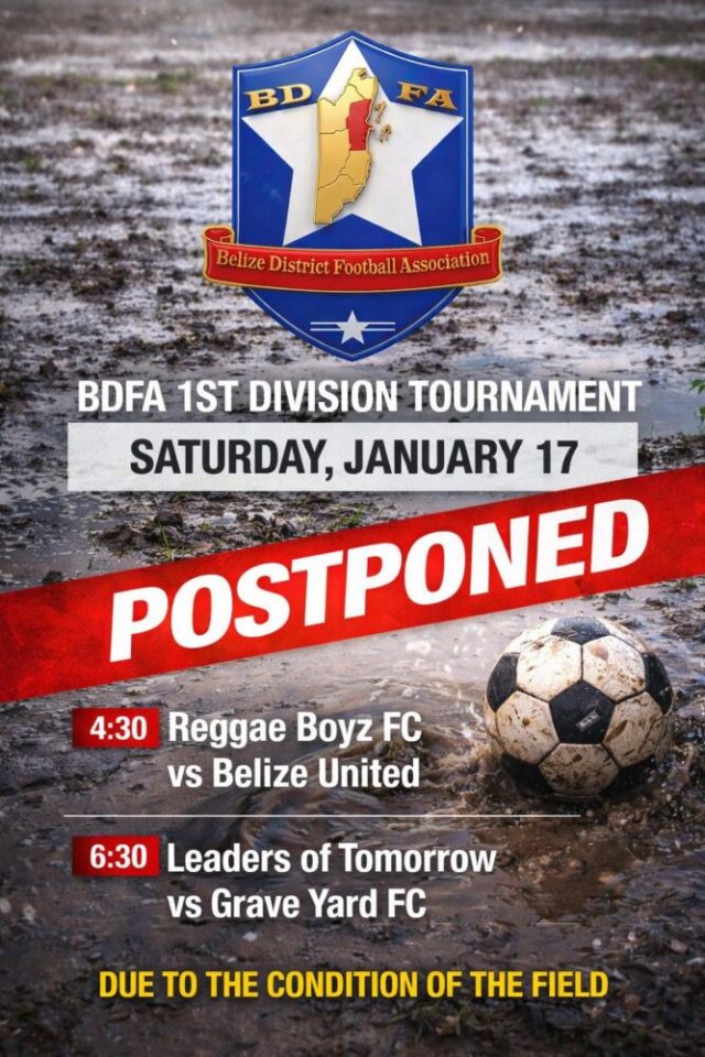 The post Rain interrupts action again: BDFA postpones Saturday 1st Division games appeared first on Belize News and Opinion on www.breakingbelizenews.com.