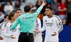 Continue reading…As Spain dissects Jude Bellingham’s red card for swearing, the Champions League playoff has taken a back seatCarlo Ancelotti had said that before Real Madrid face Manchester City on Wednesday night, he would approach Pep Guardiola and ask him if he really thought his team had only a 1% chance of going through. Most people would rather he went up to his opposite number and said eff off instead. Better still, try that with the thousands of City supporters landing in Spain hoping for a comeback of their own this time, see how they react: a smile, an embrace, or a punch in the face? At least that way they might get an answer to the question occupying them more than any other the last three days, expletives eclipsing everything.Even, it has felt, this European tie, conspiracy winning out over what Ancelotti said had become a clásico. These are strange times, strange and very silly times. At moments they have felt like slightly sinister ones too, and definitely depressing. Apologies for the language that follows, and for the amplification, but you should try being here. Laugh? You’ll cry. Continue reading…