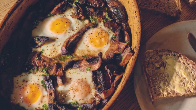 - Serve the mushrooms and eggs with warm sourdough… and a smile.